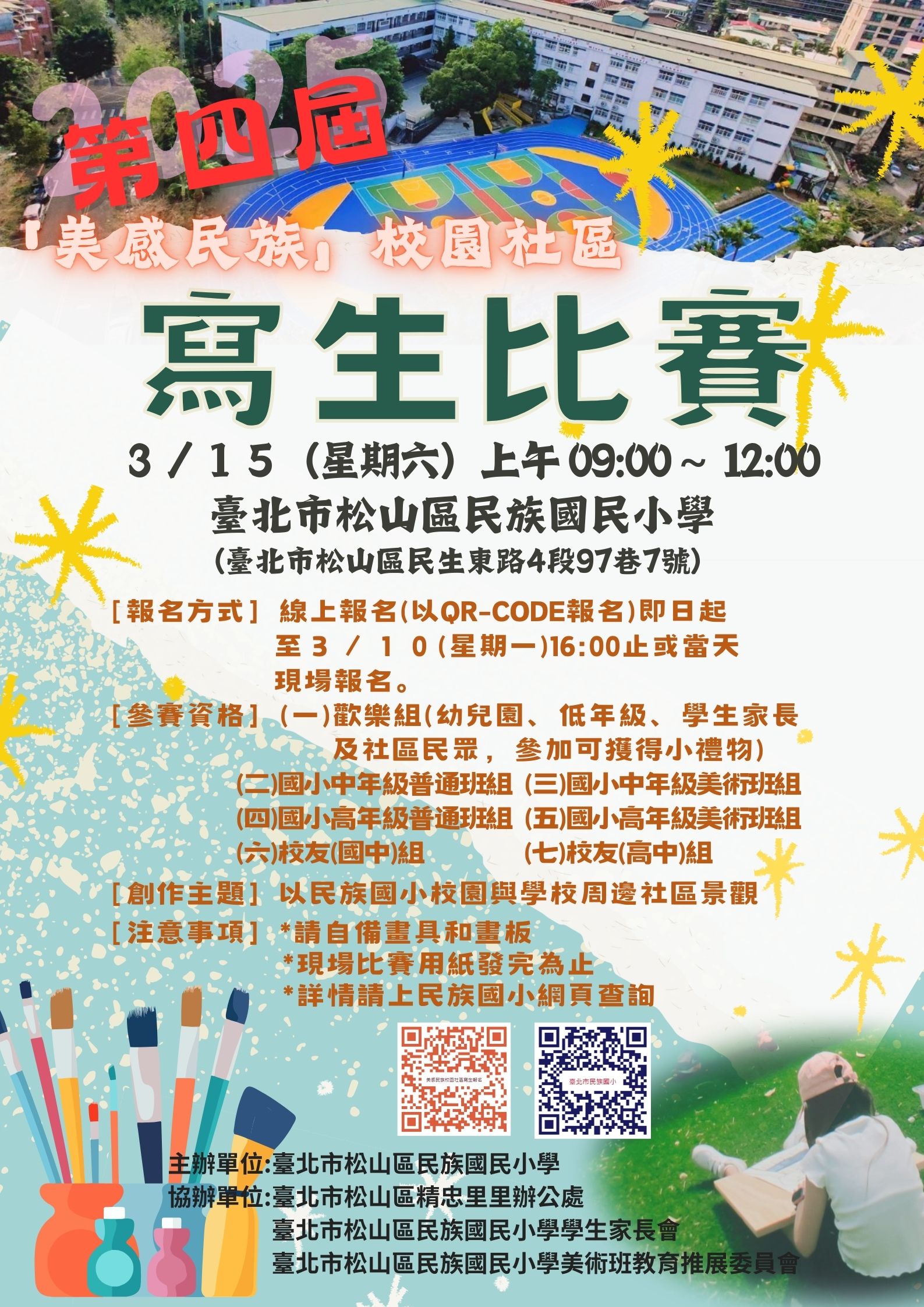 比賽地點:臺北市民族國小(臺北市松山區民生東路四段97巷7 號),若遇雨天照常舉行。